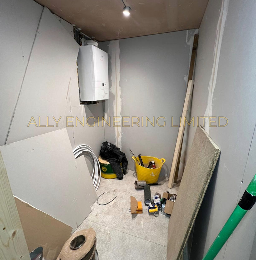 A smart reconfiguration of a garage into three valuable spaces: a comfortable extra bedroom, a functional utility room, and a retained storage area. We managed the full fit-out, including insulated partition walls, plumbing for laundry appliances, and a full thermal upgrade to create a warm, habitable living space.